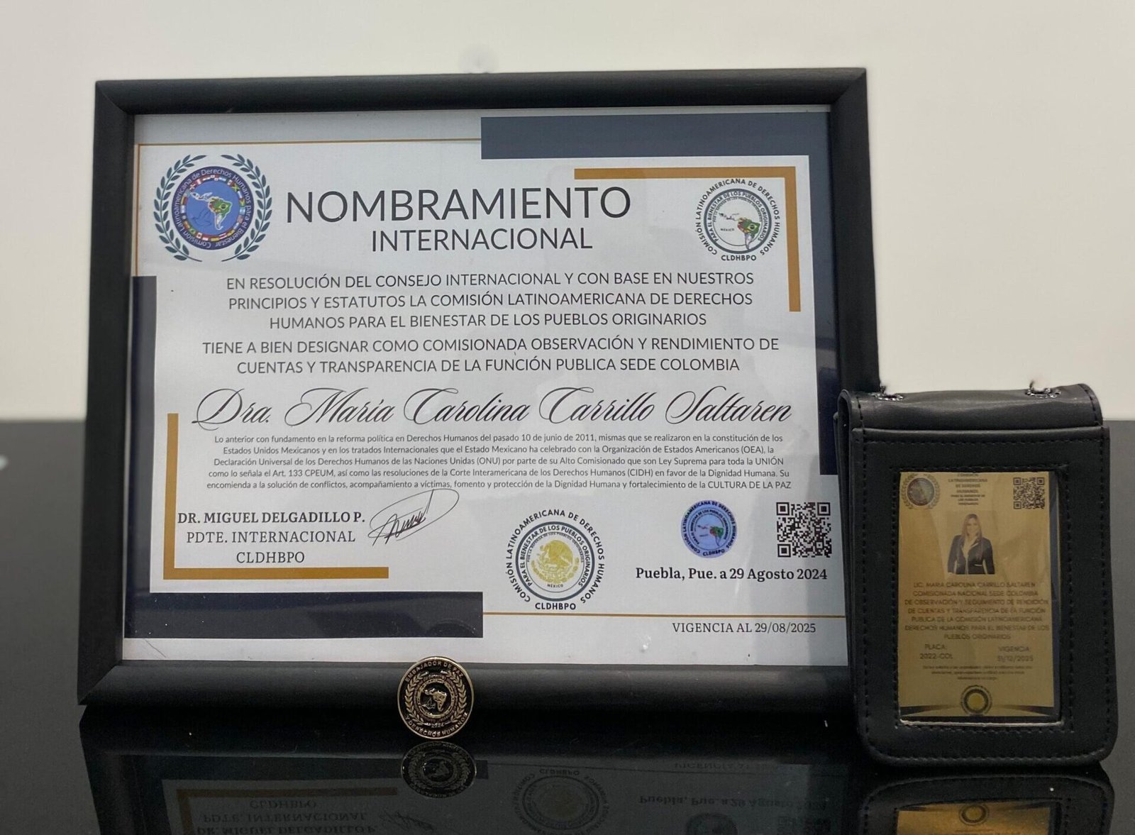 Durante la ceremonia de nombramientos se entrega la credencial metálica, su nombramiento enmarcado y el pin que representa a nuestra institución.